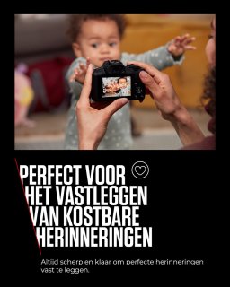 - Scherp en snel: Dual Pixel CMOS AF met Eye Detection zorgt dat gezichten en ogen betrouwbaar in focus blijven—perfect voor portretten, familie- en straatfotografie.